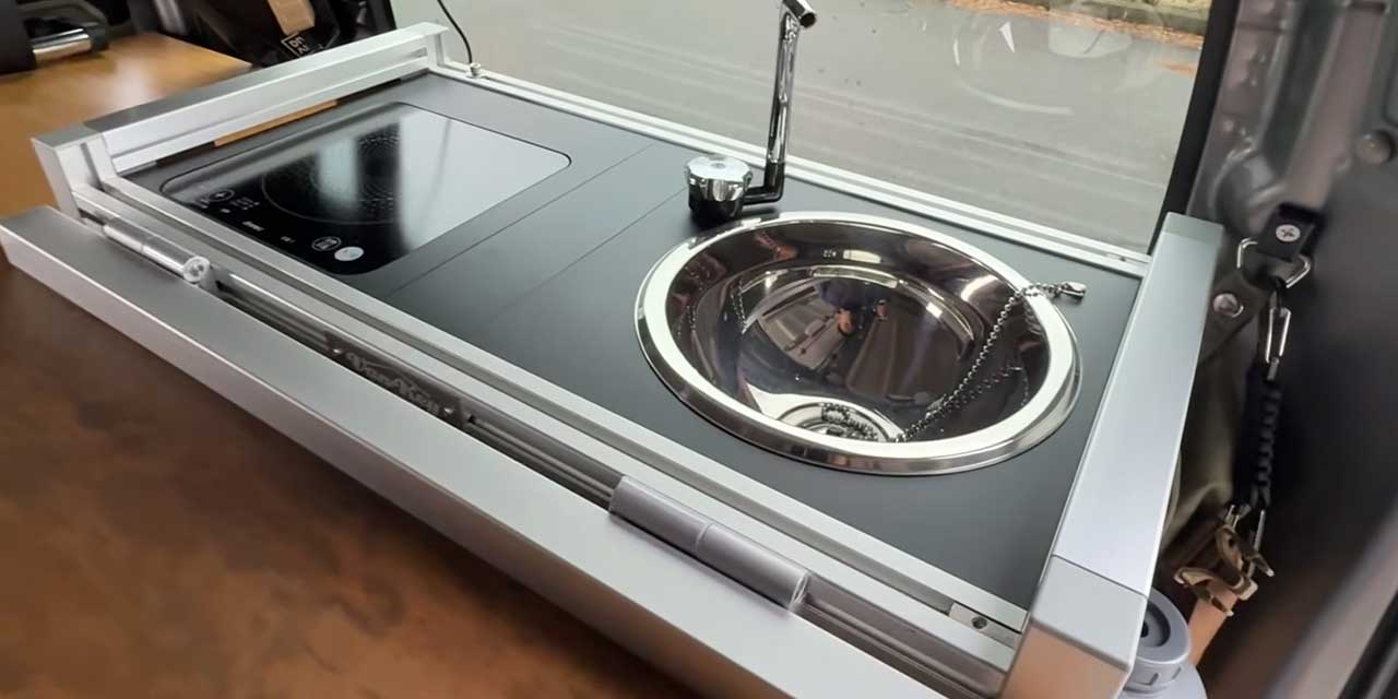 しかし、AORA 300であれば、この30Aポートから直接キャンピングカーのDC配線システムに給電することが可能です。単なる「家電を動かすための非常用バッテリー」ではなく、あなたの愛車全体の「エネルギー中枢(メインシステム)」として、完全に統合した運用が可能になるのです。当社が販売している車中泊用キッチンキット「ハーミット」の水回りポンプなども、余裕で並行稼働させることができます。