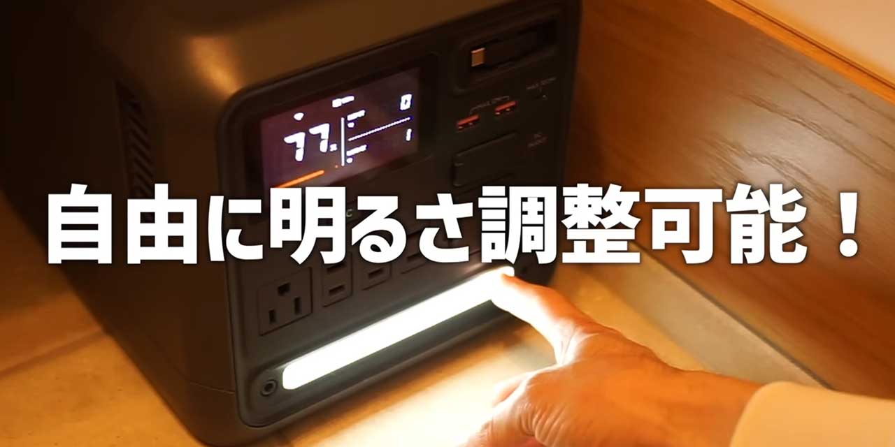 停電した瞬間に人間が最も強く求めるのは、電気そのものよりもまず「光」です。DJI Power 1000 Miniには、本体前面に広範囲を照らす高輝度LEDライトが内蔵されています。
