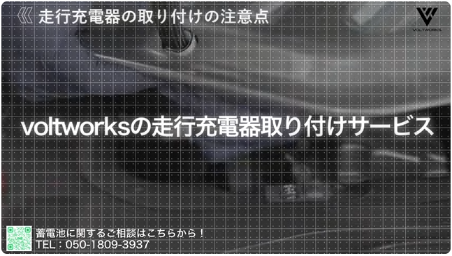 さらに、関東・関西・北陸エリアでは走行充電器の取り付けサービスも提供。他社では断られることも多い施工に対応できるのも、ボルトワークスならではの強みです。神奈川、大阪、富山の拠点では実機体験も可能。購入前に納得のいくまで確認できるので、ぜひお気軽に相談してみてください。