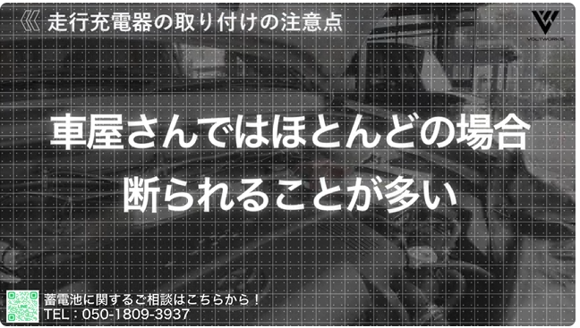 しかし、これら強力な走行充電器には「取り付け」という高いハードルがあります。