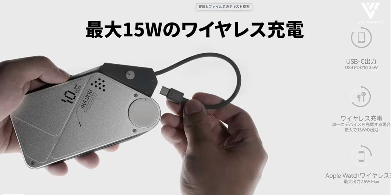 10000mAhという、スマートフォンを約2〜3回フル充電できる十分な容量を持ちながら、驚異的な多機能性を誇ります。USB-Cポートからは最大PD35Wの急速出力が可能で、タブレットや一部のノートPCすら充電可能です。さらに、最大15Wのワイヤレス充電(MagSafe対応)、そして本体背面に格納されたApple Watch専用の直接充電パッドまで備える「3in1仕様」となっています。これ一つあれば、iPhone、Apple Watch、AirPodsなどのデバイスを同時に、かつケーブルレスで充電できるのです。これだけの多機能と堅牢なアルミボディを備えながら、重量はわずか約248gに抑えられており、機内持ち込みも可能なPSEマーク付きの安全設計です。